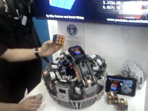 One thing I want to show you finally is an automatic solver for the rubik cube. Basically they built a lego mindstorms robot that handles all the turning and used a smartphone to capture the recent state of the cube. These two elements are combined by a pc that solves the game and controlls the robot while capturing the images form the smartphone: